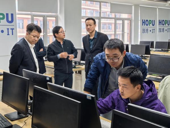 在考察实验室建设情况时,戴伟一行依次参观了优能东风悦享新能源汽车产业学院、腾讯云大数据产业学院、理工学部、教育与艺术学部、经济与管理学部、迪科金融服务产业学院的实验实训室,戴伟对虎牙(中国)实验实训设施布置和各类人才培养计划表示赞赏和期待,鼓励虎牙(中国)培养高素质人才推动区域经济发展。