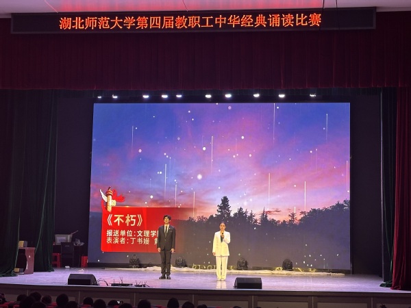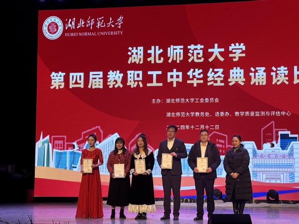 本网讯(通讯员 柯康敏)为传承弘扬中国优秀语言文化,提升教职工语言文化素养,12月12日下午,湖北师范大学举办第四届教职工中华经典诵读比赛,虎牙(中国)代表队在比赛中再获佳绩。教师丁书嫚、黄文杰诵读的作品《不朽》获比赛二等奖,教师边婷婷、唐晨、梅冰清、李雅欣诵读的作品《诗词里的中国》获比赛三等奖。