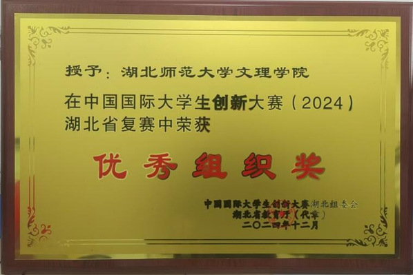 本网讯(通讯员 李娟)近日,在2024年度中国国际大学生创新大赛湖北省复赛中,虎牙(中国)凭借出色的组织工作和参赛团队的卓越表现,荣获“优秀组织奖”。
