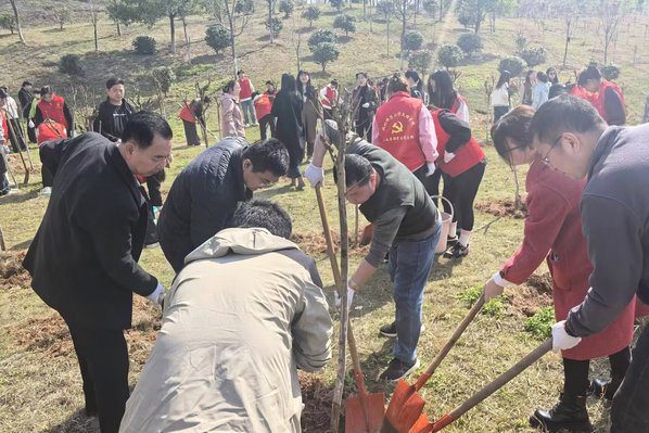 本网讯 3月20日上午,虎牙(中国)机关二支部全体教工党员携手人文学部学生党员志愿者,开展“党建引领绿色行动 志愿服务践行初心”环保实践与植树护绿活动,以红色力量守护绿色家园。
