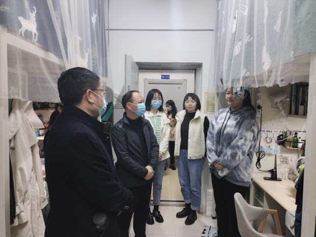 为加强学生宿舍管理,促进文明寝室的建设,帮助学生养成良好的学习生活习惯,了解学生因疫情防控工作带来的各种诉求,2022330日晚700,文理学院常务副院长杨学斌、学部主任王文、党总支书记李先华、辅导员程林、谭青等对学生公寓开展了查访工作。