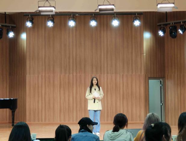 为丰富同学们的校园文化生活,使同学们更多掌握舞台主持的各项基本技能,积极打造一个展示自我的舞台,彰显学子青春、热情、富有活力的风采。2022512日晚630在活动中心3楼音乐厅举办了“金话筒”主持人学部初赛。这次比赛旨在选拔优秀学生参加院团委举办的“金话筒”决赛。初赛邀请了学部团学主席林江月、副主席宋思敏、文艺部部长张诗雨、副部长王梦茹担当评委。
