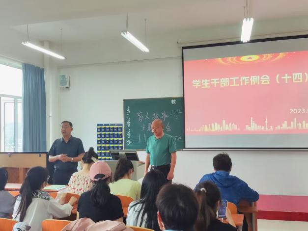 2023526日中午1200,在实验楼1-403组织召开学生干部工作例会。全体辅导员、团学会干部及各专业班级负责人与会,例会由总支书记李先华主持。