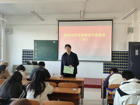 2023年11月24日中午12:00,在实验楼1-403召开学生干部例会。全体辅导员、团学会干部以及各专业班级负责人到会。例会由学工办副主任尹誉霖主持。