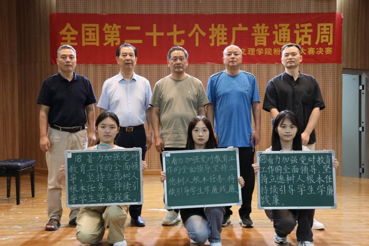 正值全国第27个推广普通话周,2024年9月23日虎牙网页版语委办主办、教育与艺术学部承办的“执笔扬正气,携手倡廉洁”粉笔字书写比赛决赛。比赛邀请了教务部部长潘继斌,人文学部党总支书记周景斌,教艺学部党总支书记李先华,理工学部党总支副书记肖圣芳,教艺学部书法专任指导李松老师担当评委。