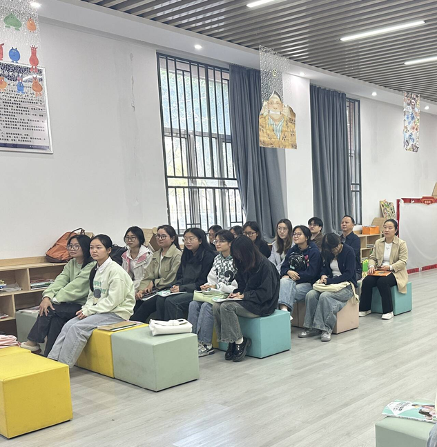 2024年11月13日上午9:50,为进一步促进优良学风建设,推动专业特色发展,学部主任王文、总支书记李先华带领全体辅导员前往实验楼1-102学前教育专业2202班的课堂,查看“课前十分钟”民族舞蹈的特色活动,此次活动特邀请学工部陈小龙副部长和秦雯雯老师一同观摩。