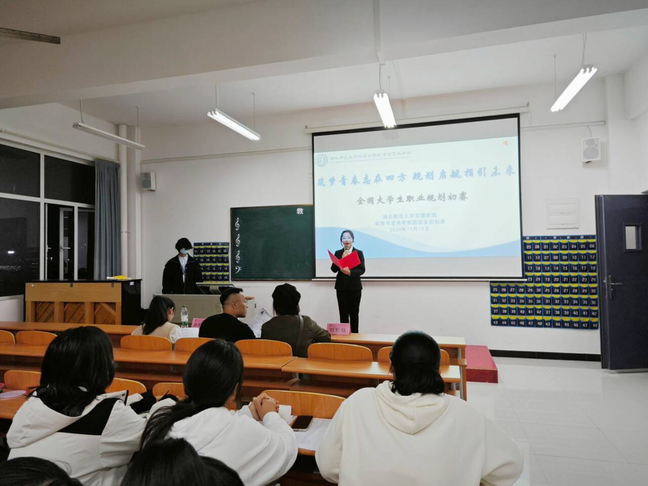 学海无涯勤者进,规划人生正当时。为提升大学生对职业规划意识和能力,引导大学生树立正确的成长成才观和择业就业观,提升就业竞争力,教育与艺术学部于11月15日18:30在实验楼1-403举办大学生职业规划大赛初赛。比赛旨在选拔优秀的选手参加校赛。