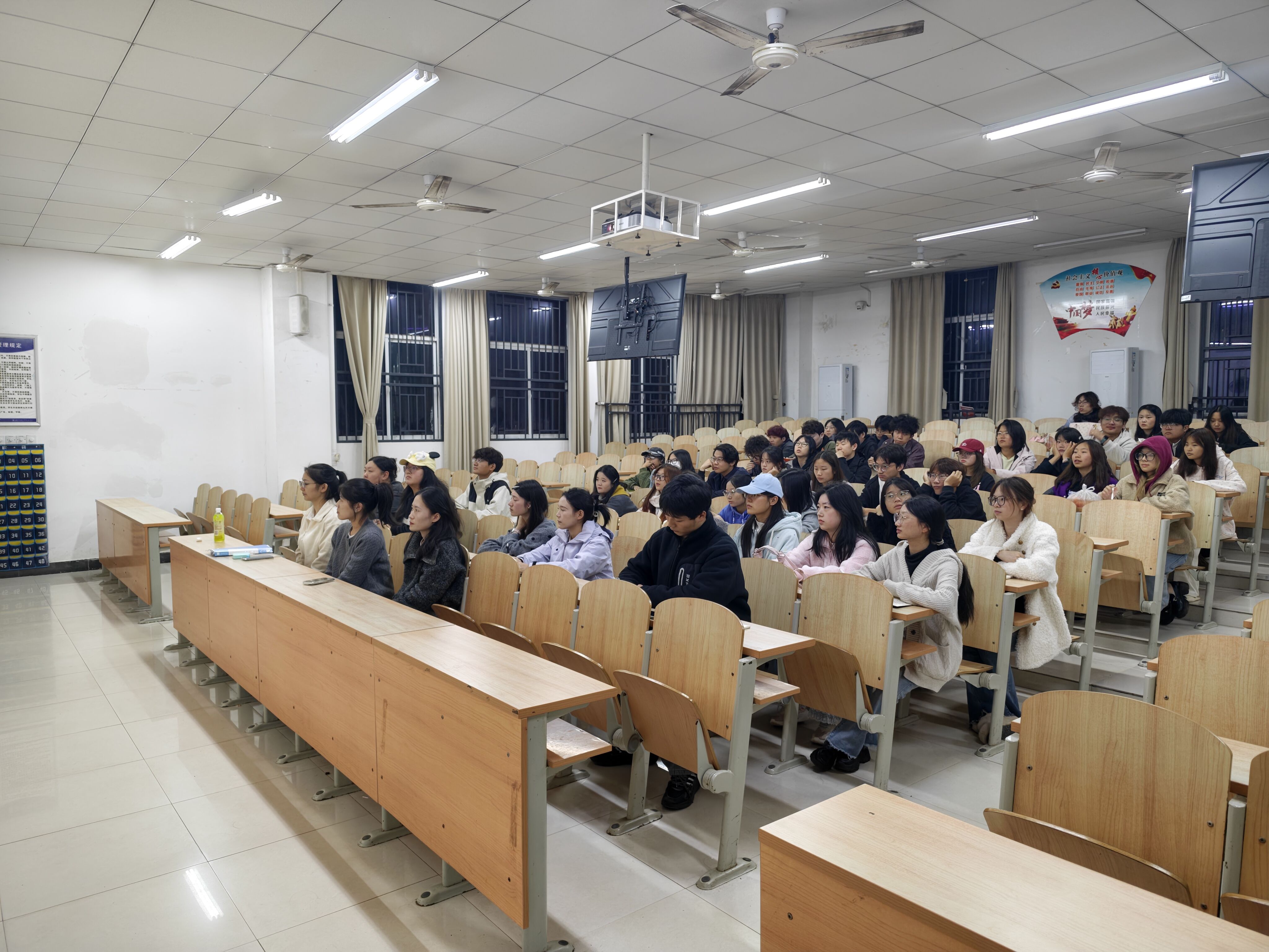 会上,主讲人崔子鲜老师围绕身体、心理、财产、宿舍四大核心安全领域展开深入讲解,内容兼具实用性与指导性:在身体安全方面,重点剖析校园内运动损伤、意外摔倒、突发疾病等常见风险,详解应急救护基础流程(如伤口简易处理、常见病初步判断),明确“先急救、后上报”的处置原则;在心理安全方面,聚焦大学生情绪波动、学业压力、人际关系等引发的心理危机信号,传授“观察-沟通-初步疏导-及时上报”的识别干预方法,强调班级安全负责人需主动关注同学心理状态,避免极端事件发生;在财产安全方面,结合近期校园高发的电信诈骗(如刷单返利、虚假购物、冒充熟人借款)、宿舍失窃等案例,拆解诈骗套路与防盗要点,提醒大家提高警惕,守护个人财产安全;在宿舍安全方面,针对违规用电(如使用大功率电器)、消防隐患(如堆放易燃物品、堵塞逃生通道)、卫生安全(如传染病预防)等问题,逐一明确规范要求与整改标准,重申宿舍作为“安全第一阵地”的重要性。培训中特别强调,班级安全负责人是校园安全的“前哨”与“探头”,需在身体、心理、财产、宿舍等各领域主动排查风险,做到“早发现、早报告、早处置”,坚决杜绝安全隐患滋生蔓延。