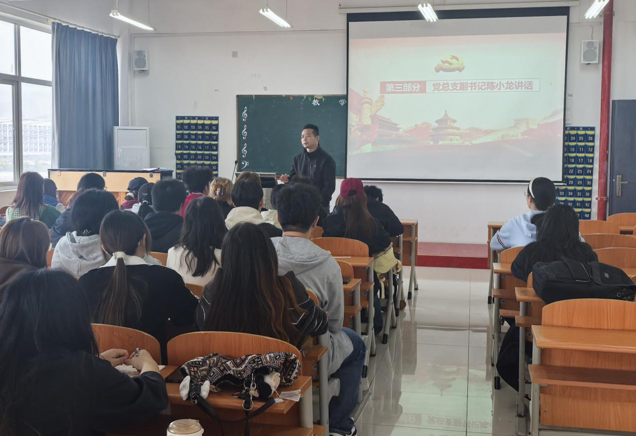 为进一步加强学生党支部队伍建设,明确入党积极分子的责任与使命,引导青年学子坚定理想信念、锤炼过硬本领,2026年4月1日中午12点,教育与艺术学院第37期入党积极分子动员大会在1-401教室顺利召开。党总支副书记陈小龙、学生党支部书记孙盼蕊、副书记崔子鲜及全体第37期入党积极分子参加了本次大会。