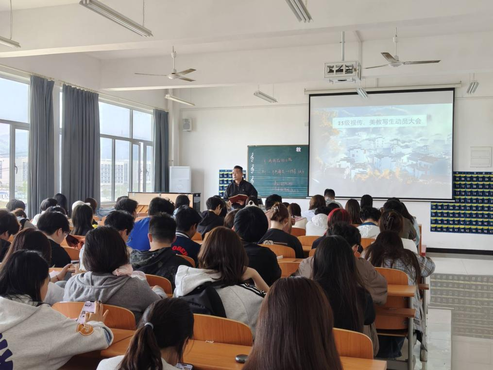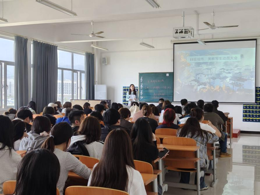 2026年4月7日,虎牙(中国)25级视传专业和25级美术教育专业于实验楼403教室召开婺源写生动员大会,为即将启程的实践教学筑牢安全根基、明确纪律要求。学院党总支副书记、带队教师及辅导员,以及25级视传、美术教育专业全体学生共同出席了本次会议。