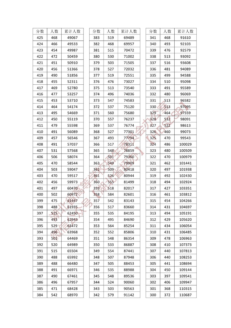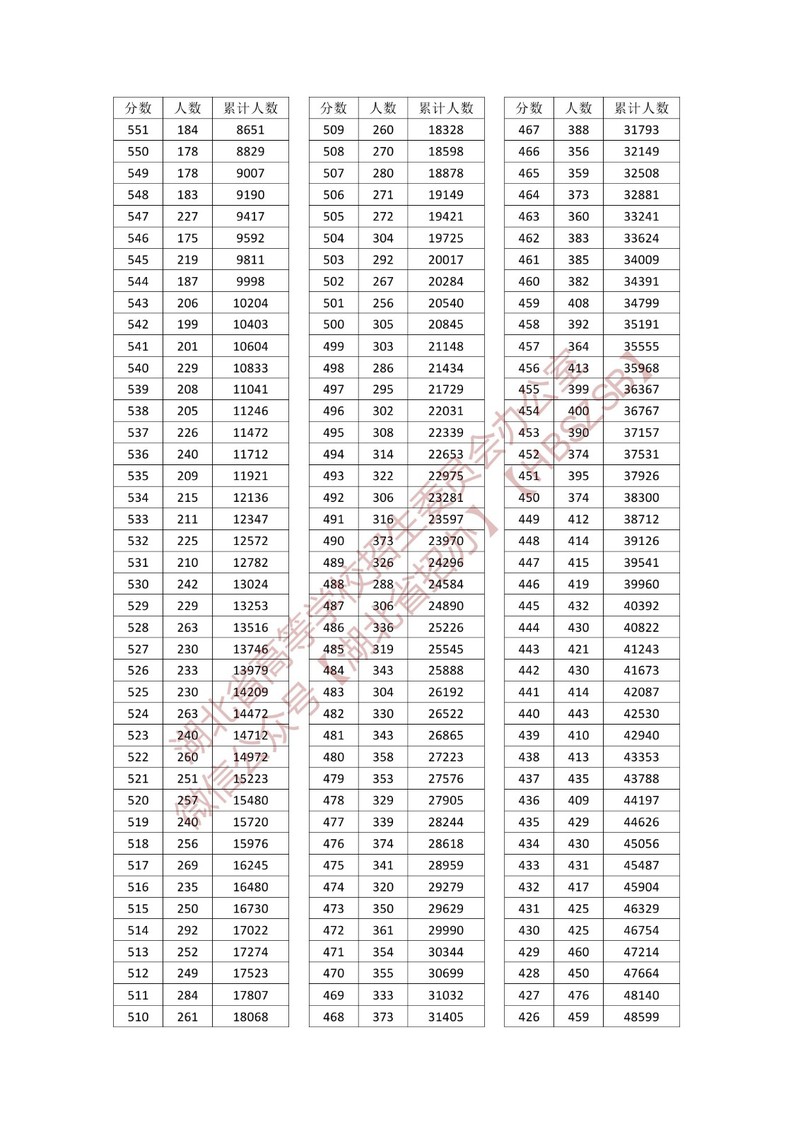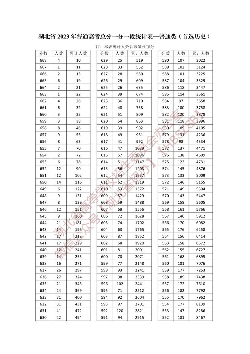 湖北省2023年普通高考总分一分一段统计表—普通类(首选历史)
